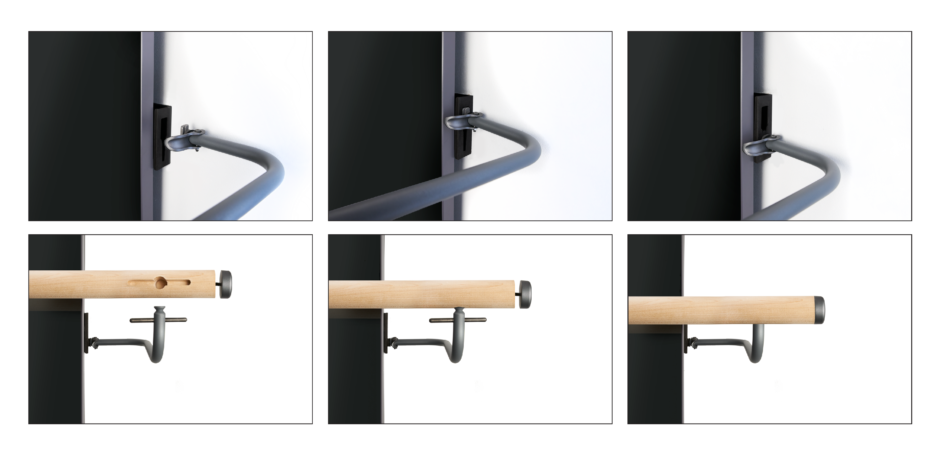Once the mount is installed, the Barre can be easily attached in two simple steps: