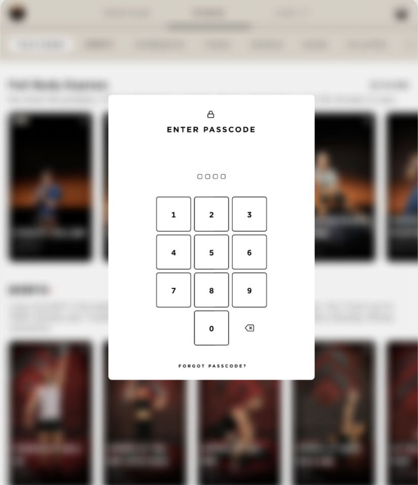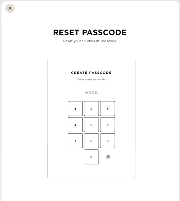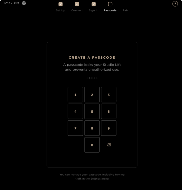 The passcode is a 4-digit PIN that will need to be entered each time you wake the Lift for use. The passcode is the same across all member profiles on the Studio Lift, and should be set up during installation.